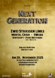 Das von Waggong e. V. betriebene soziokulturelle Zentrum „Kulturwerkstatt Germaniastraße“ im Frankfurter Nordend hat als Treffpunkt und Kommunikationszentrum eine starke Anbindung an die regionale freie Kulturszene. Ungefähr 1.500 Musiker*innen und andere Kulturschaffende profitieren von den Angeboten unseres Zentrums. Wir verwalten zweiundzwanzig Proberäume im Germaniabunker sowie in Frankfurter Bürgerhäusern, die vor allem von Musik- und Theatergruppen genutzt werden. Wir arbeiten zusammen mit bildenden Künstler*innen und stellen unsere Infrastruktur zu Verfügung. Wir streben eine Vernetzung innerhalb der Kulturszene an und beteiligen uns immer wieder an innovativen Projekten, die in Kooperation mit anderen Vereinen und Institutionen durchgeführt werden. Seit 2018 ist Waggong Mitglied bei der LAKS Hessen (Landesarbeitsgemeinschaft der Kulturinitiativen und Soziokulturellen Zentren in Hessen e.V.).